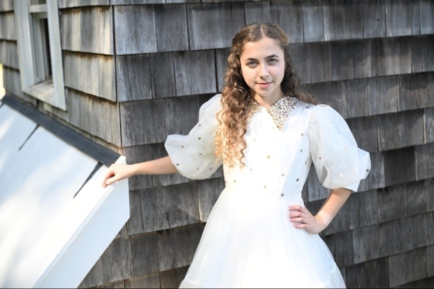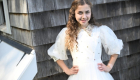 The Glimmer Dots Teen Gown is a radiant Coordinate to the kids collection, designed with a more refined touch for teens. In soft champagne tones, the bodice features the glimmer dots fabric—champagne tulle sprinkled with pastel sparkles—framed by a pointed collar filled with coordinating rhinestones. The skirt flows in layers of champagne tulle, with two center panels of glimmer dots adding shimmer and contrast. Elegant, and perfect for dressing up in style.