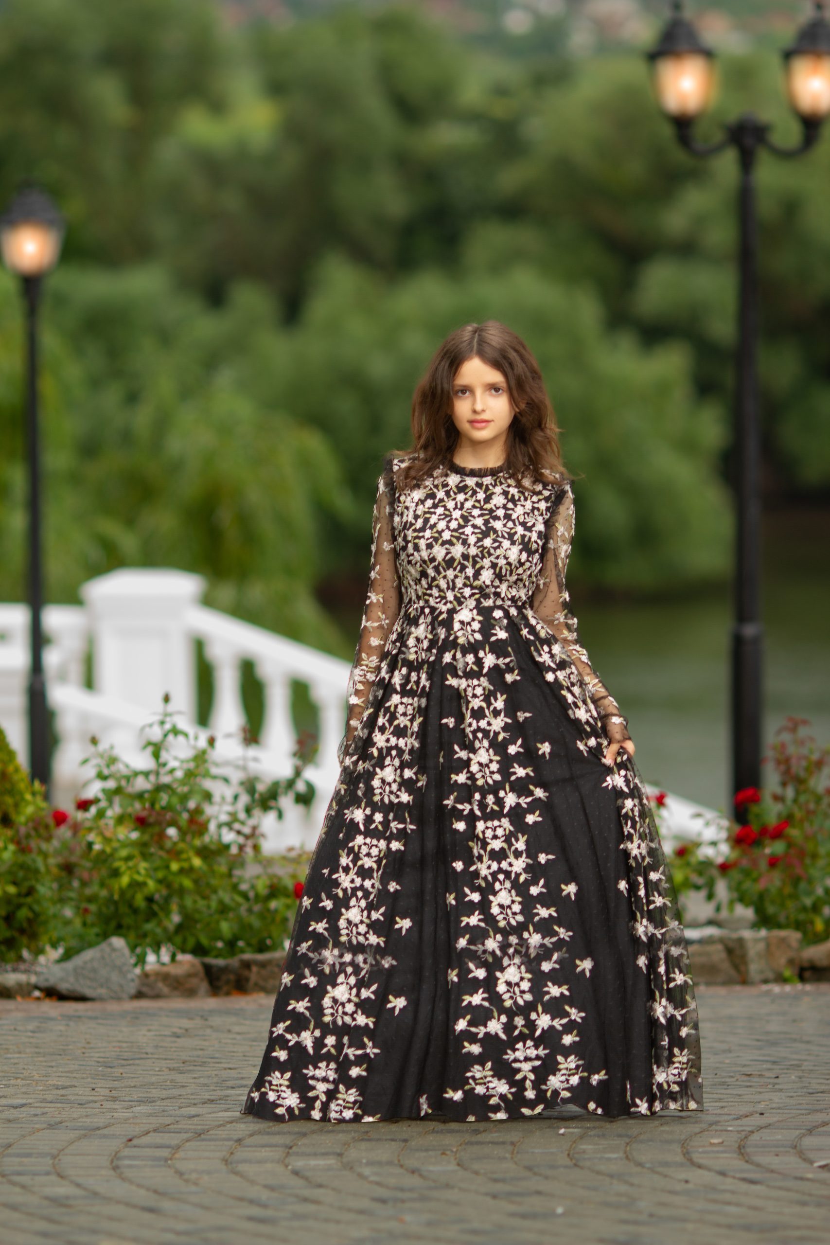 The Gold on Black Tapestry Dress, a masterpiece that weaves together luxury and elegance. Against a backdrop of rich black, intricate tapestry flowers adorned in shimmering gold take center stage, creating a mesmerizing visual tapestry. The interplay of gold against the darkness of the fabric evokes a sense of timeless allure, making this dress a true embodiment of sophistication and charm. Step into the Gold on Black Tapestry Dress and bask in the radiance of its intricate design, capturing the gaze of all who behold it.