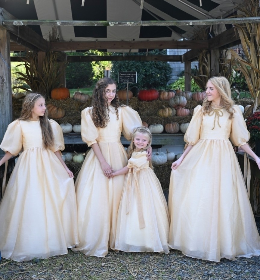 Introducing The Golden Hour Family Collection!! ✨ This collection captures the warmth of sunset in flowing gold crepe chiffon. Designed for all ages, each gown features age-appropriate details—from puffed sleeves to full skirts—while keeping a unified, elegant silhouette. Perfect for coordinated moments, this collection glows with harmony, softness, and timeless charm