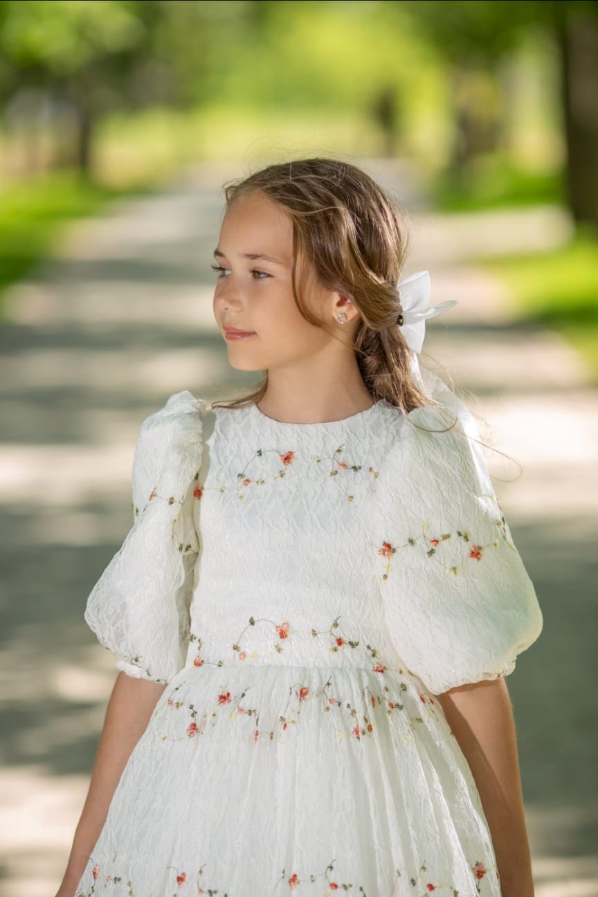 The Ivory Garden Lace Dress features delicate rose embroidery scattered throughout, adding a touch of charm and whimsy. It combines classic lace with playful floral details for a timeless, elegant look! Available in both ivory and pink!