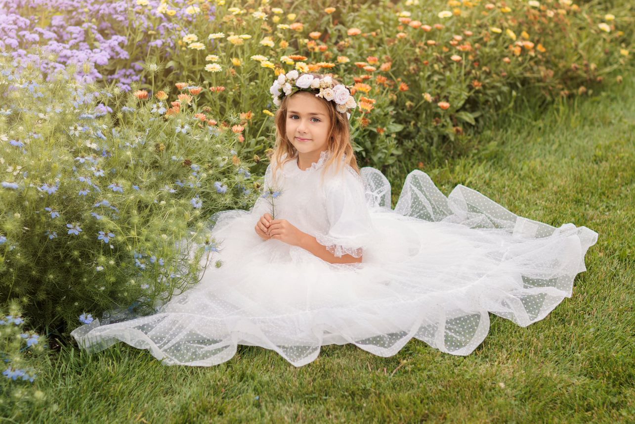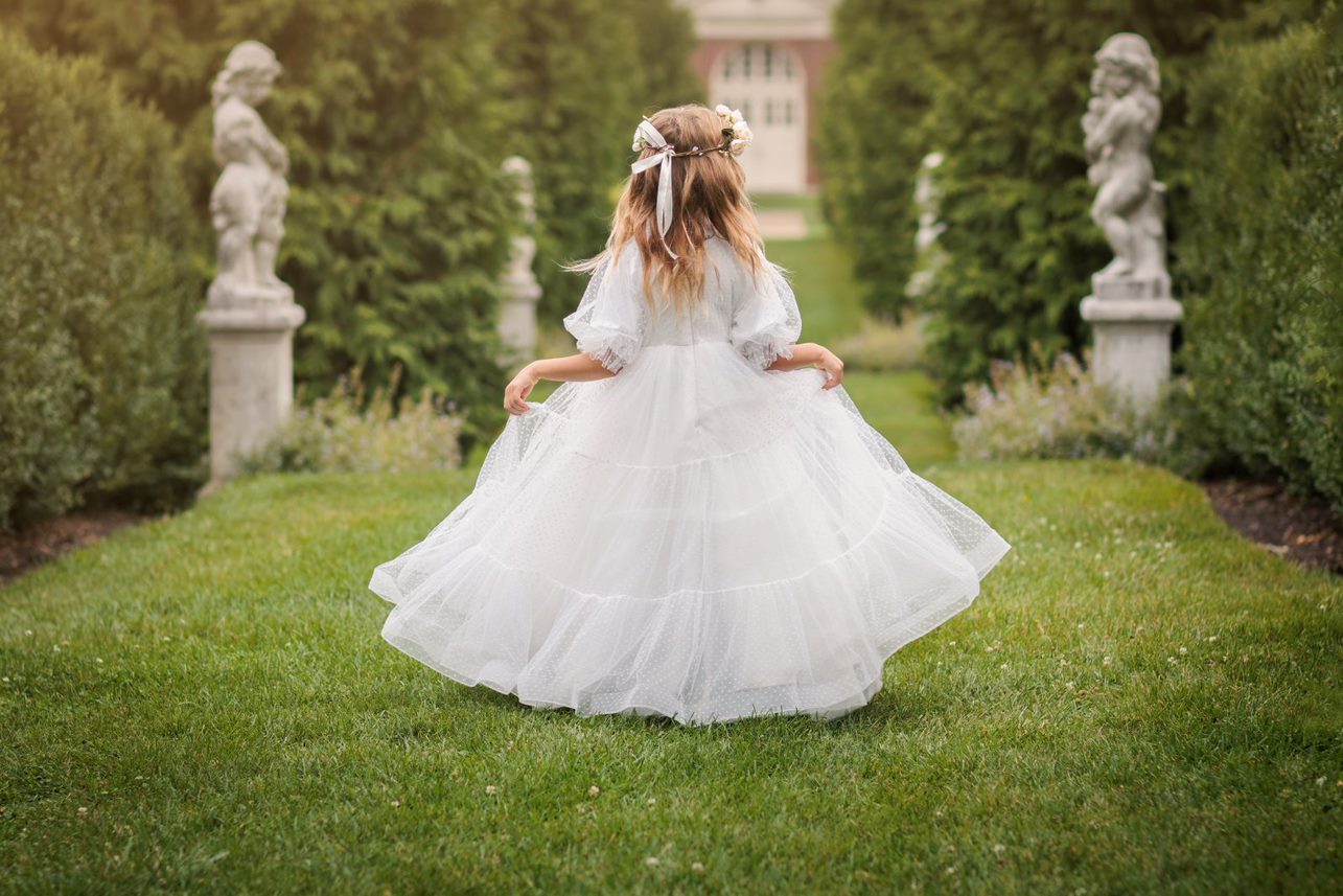 The crisp color of ivory gives this stunning dress a pure and innocent appeal. It stands out with its mock collar, billowy skirt and pleats that give it some texture and definition. Three-quarter length sleeves make it the perfect choice for wearing to springtime events.
