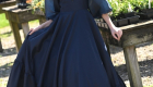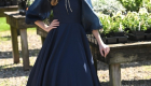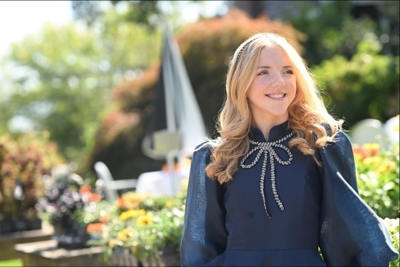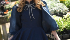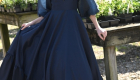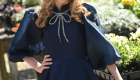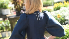 The Navy Satin Bowdrop Teen Dress is a refined silhouette crafted from matte satin in a deep navy hue. Its A-line skirt flows gracefully, ending in a dramatic V-shaped ruffle hem. A fitted bodice meets a crisp French collar, framed by sheer organza puff sleeves. At the neckline, a silver-beaded bow cascades down the center, adding a sparkling focal point to this elegant, modern classic.