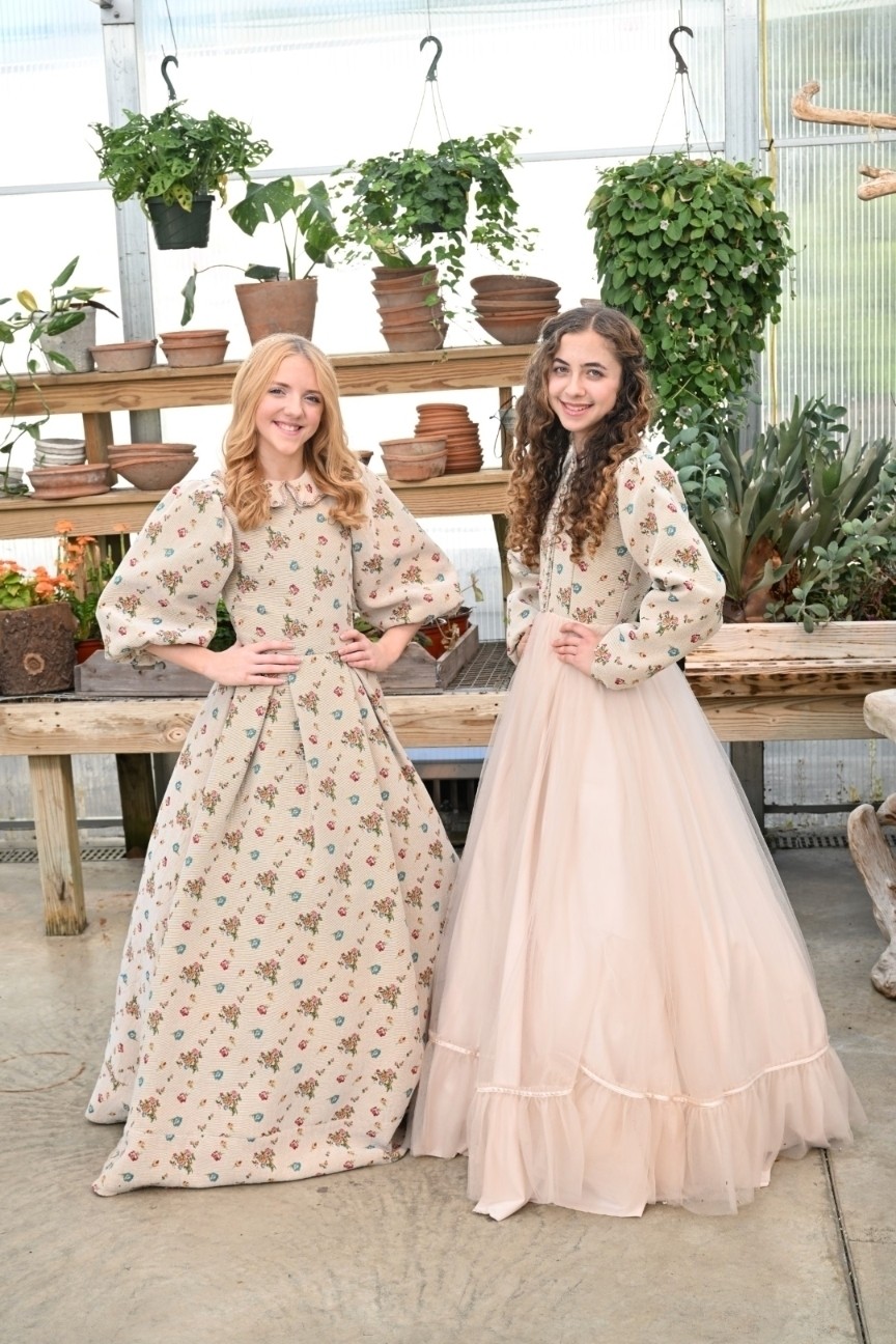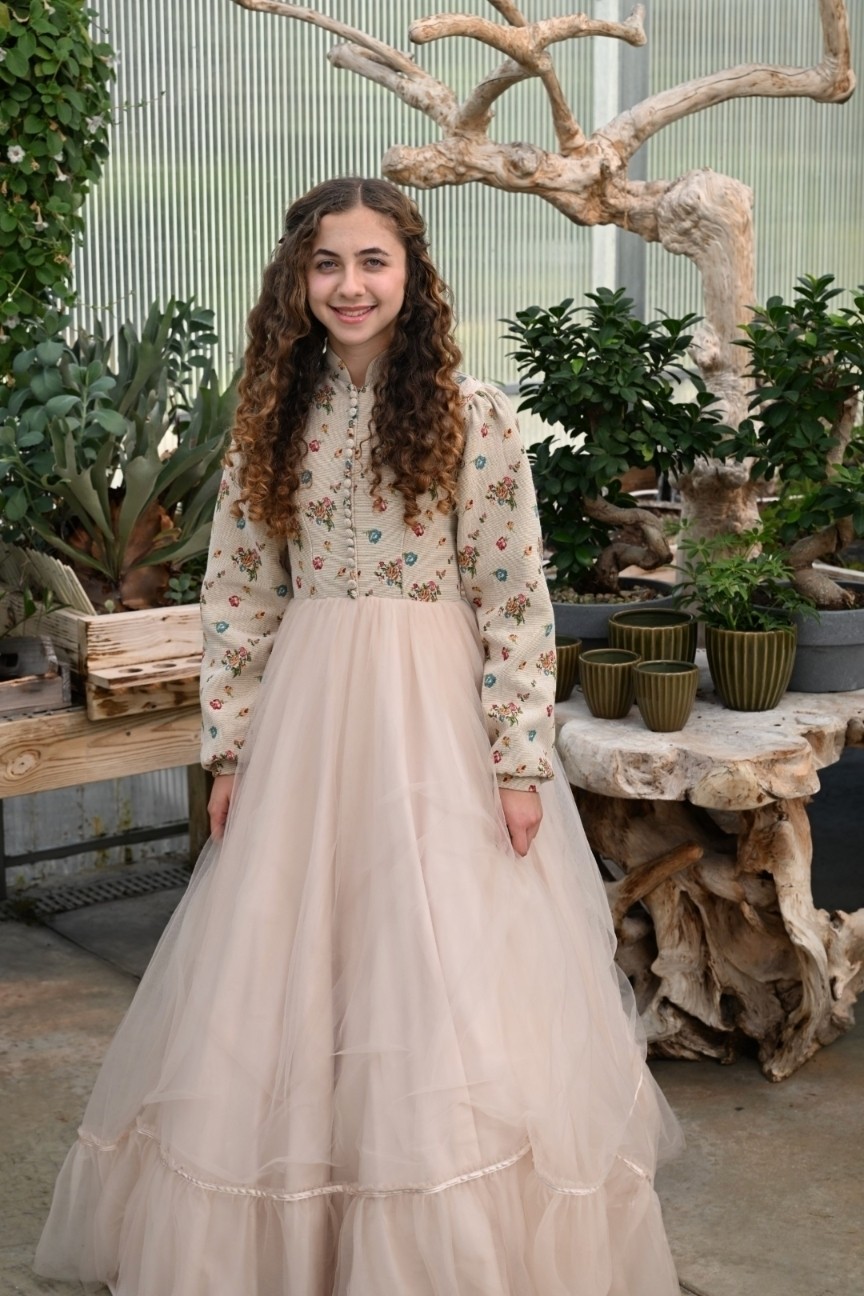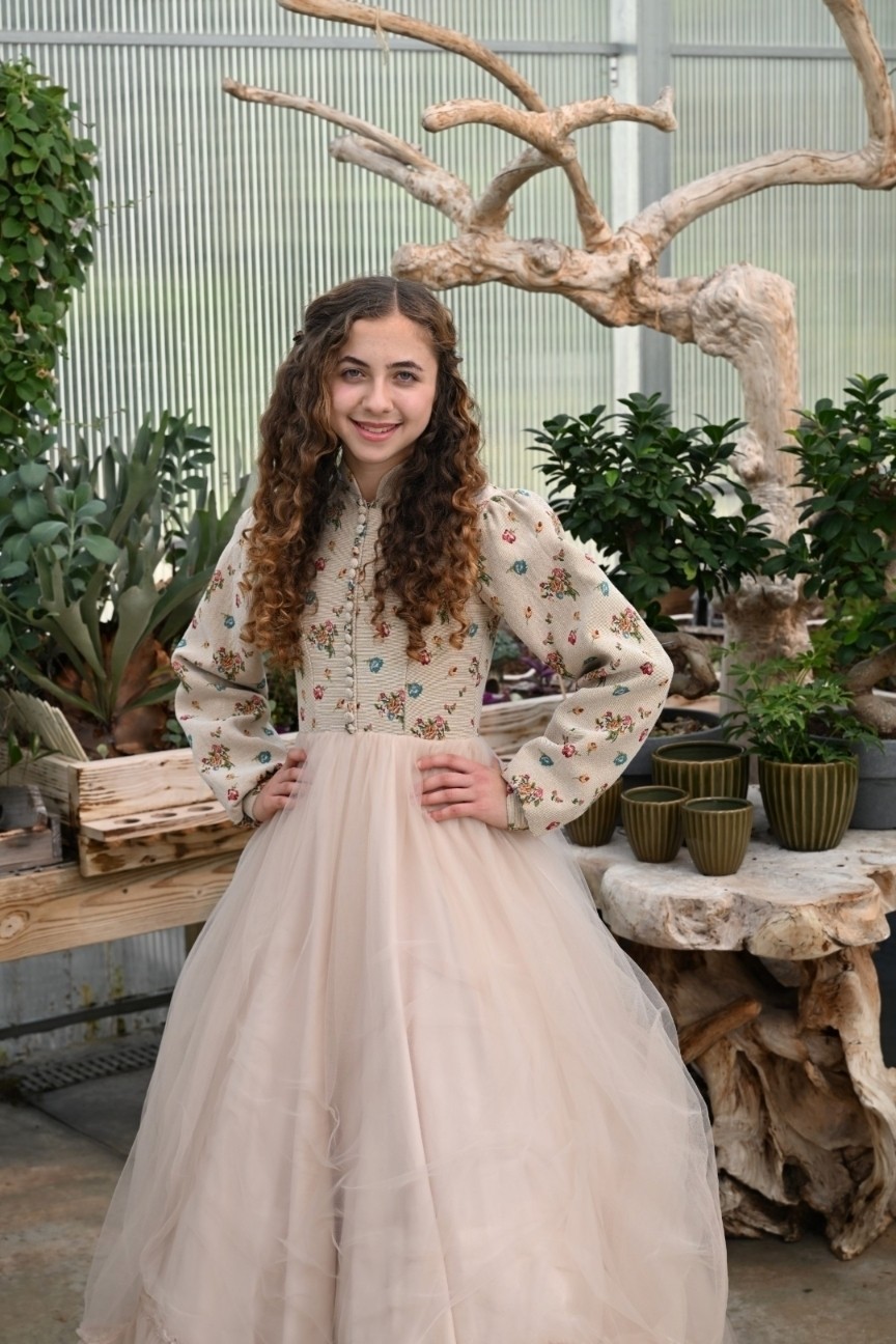 The Sandstone Garden Brocade Teen Dress 2.0 reimagines our signature style with a refined new silhouette. The bodice, crafted from the luxurious Garden Brocade fabric, features covered buttons down the front and a classic French collar for a touch of timeless elegance. Long sleeves with cuffed edges add structure and sophistication, while a flowing tulle skirt softens the look with graceful movement. A modern, elevated design made for the teen with an eye for elegance.