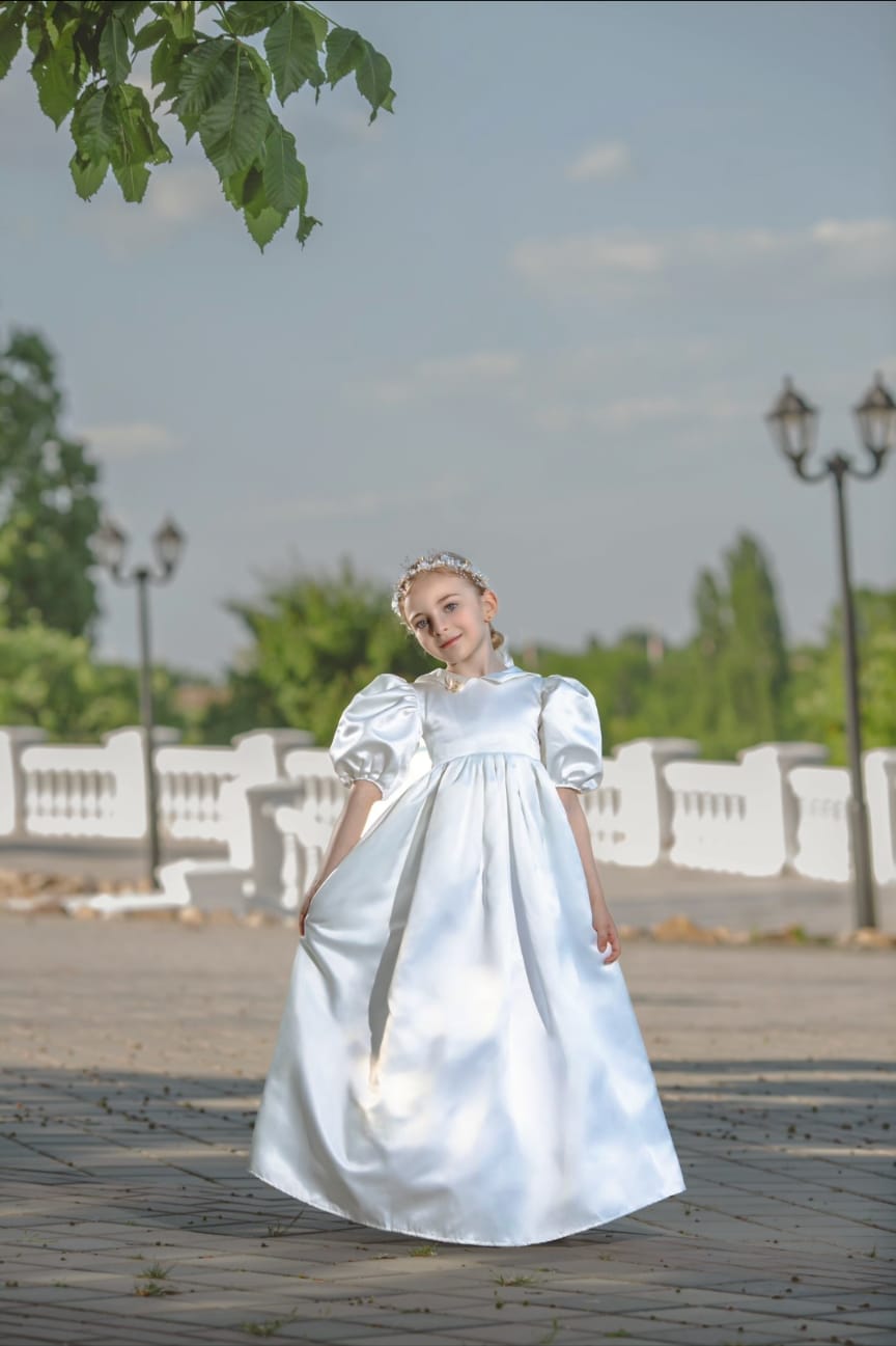 The Satin Jewel Dress features a sleek, sophisticated design highlighted by a small pointed collar and a charming gold brooch. The smooth satin fabric offers a luxurious feel, while the delicate collar and brooch add a touch of classic elegance. With its luxurious sheen and understated glamour, this dress exudes a look of timeless grace!